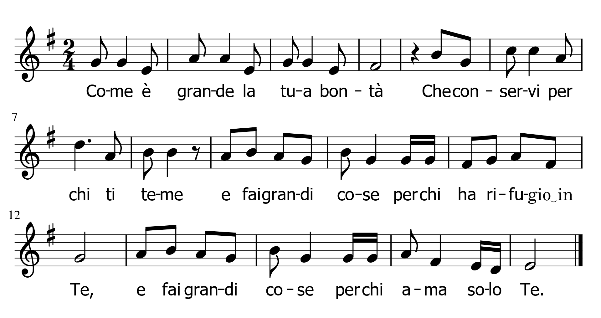 Le tre diverse armonizzazioni per chitarra, proposte dal mastro Franco Lazzari, possono creare atmosfere diverse a seconda del tempo liturgico, delle ripetizioni, della capacità tecniche dello strumentista. Infine: perché non pensare, laddove ci fosse la possibilità, anche all’inserimento di uno strumento solista come flauto o clarinetto?
