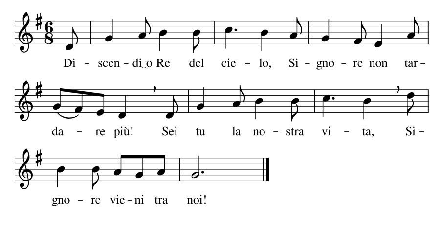 Discendi o Re del cielo . Spartiti Armonizzazione Isaia Ravelli Audio esecuzione ensemble sicut in caelo https://www.chiesadimilano.it/servizioperlapastoraleliturgica/files/2020/10/Discendi-o-Re-del-cielo-Ensemble-sicut-in-caelo.mp3 Pubblicato martedì 13 Ottobre 2020 Modificato il martedì 13 Ottobre 2020
