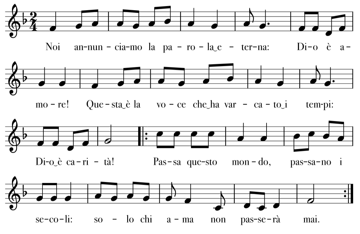 CD 591 Passa questo mondo Spartiti Versione originale Interludio di Gianluigi Rusconi in Fa Interludio di Gianluigi Rusconi in Mib Audio https://www.chiesadimilano.it/servizioperlapastoraleliturgica/files/2019/09/CD591-Passa-a-questo-mondo.mp3 Pubblicato lunedì 7 Ottobre 2019 Modificato il lunedì 7 Ottobre 2019