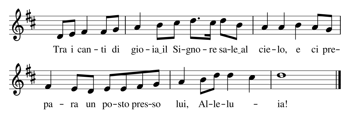 Il canto è tratto dal repertorio di Lourdes ed è proprio della Solennità dell’Ascensione
