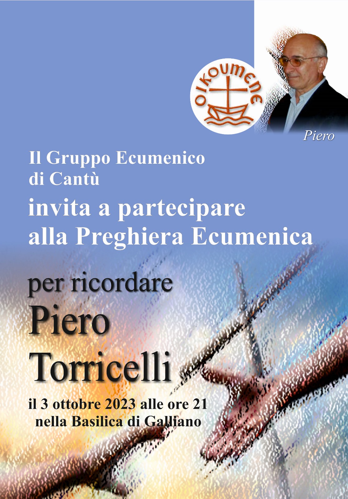 Con grande dispiacere comunichiamo la dipartita, mercoledì 10 maggio 2023, di Pierangelo Torricelli, residente ad Arosio (CO), animatore del gruppo ecumenico di Cantù.