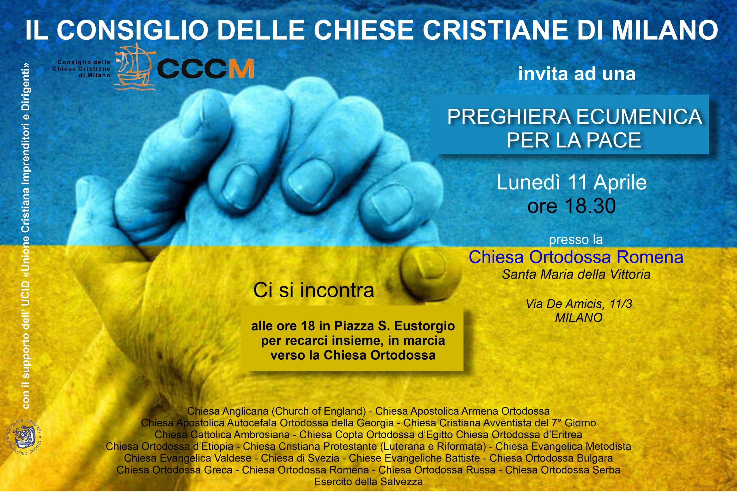 Il Consiglio delle Chiese Cristiane di Milano, con il supporto di UCID (Unione Cristiana Imprenditori e Dirigenti), promuove un incontro pubblico di preghiera per la pace per le terre devastate dal conflitto tra popoli fratelli. All’inizio di quella che nelle terre cattoliche ambrosiane viene chiamata Settimana Autentica che porterà alla celebrazione della Pasqua, punto di partenza della pace che è dono del Risorto, la Chiesa Ortodossa Romena di S. Maria della Vittoria in via De Amicis 11/3 a Milano ospiterà un momento di preghiera ecumenico che avrà il suo inizio alle ore 18 in Piazza S. Eustorgio per recarsi insieme in marcia verso la Chiesa Ortodossa.