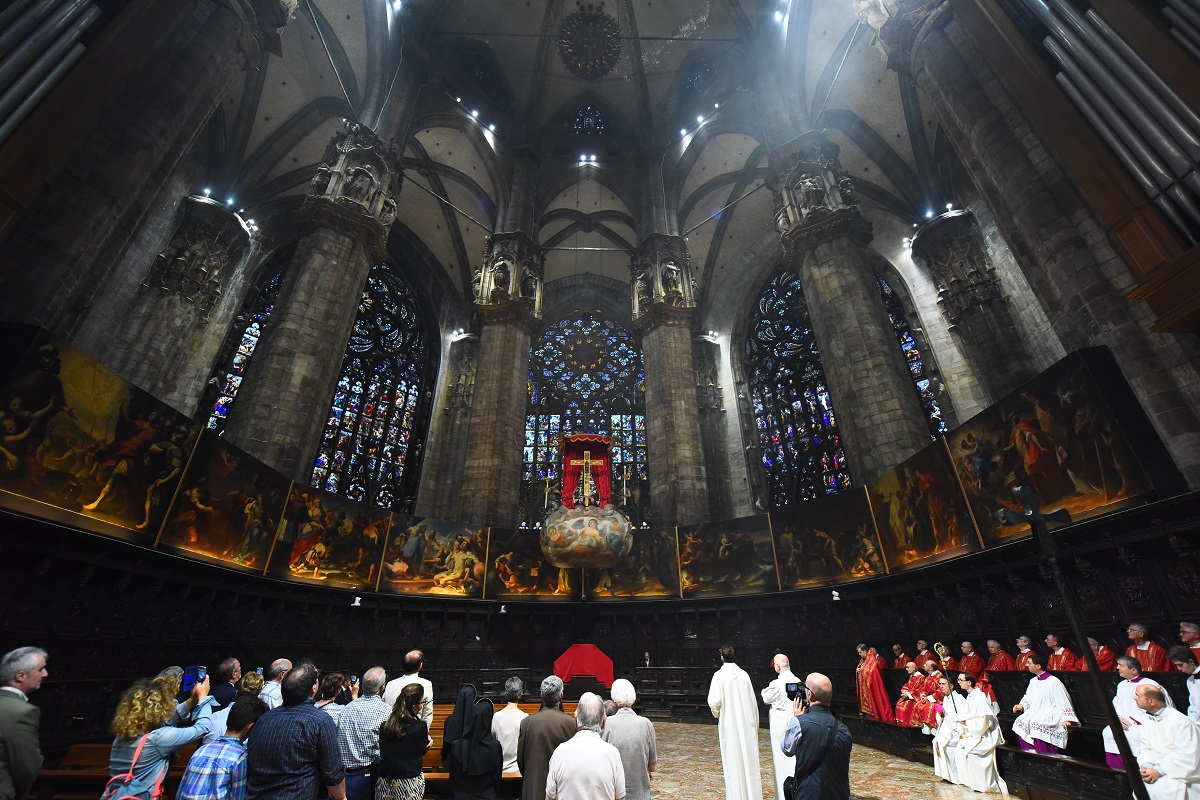 Il sabato, la domenica e il lunedì più vicini alla festa dell’Esaltazione della Santa Croce, che ricorre il 14 settembre, in Duomo si celebra, infatti, il Triduo, con il rito della Nivola. Quella sorta di “ascensore”, a forma di nuvola – in dialetto, appunto “nivola” – in cui siede l’Arcivescovo, quest’anno, per riporre il Santo chiodo che è stato offerto per i tre giorni alla devozione dei fedeli in altare maggiore. Tradizioni antiche (la “Nivola” risale al tempo del Borromeo), ma non formali o solo suggestive, così come deve essere l’autentica venerazione di ogni reliquia, che svela i tanti falsi miti di oggi.
