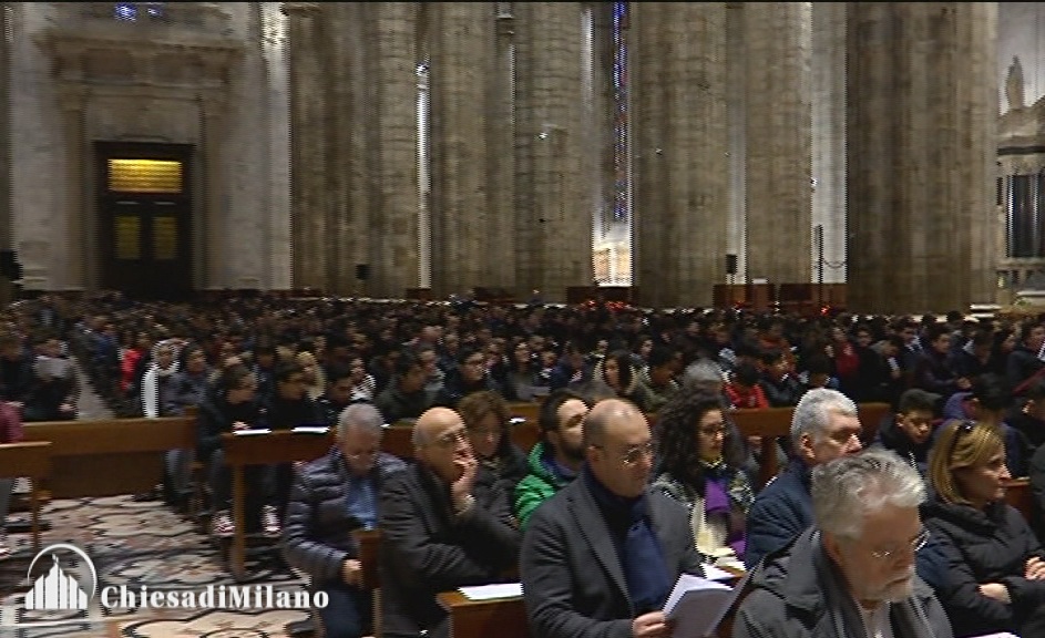 Oltre 4000 ragazzi provenienti da tutta la Lombardia in Duomo per pregare insieme, riflettere, ascoltare l’Arcivescovo. Sono i giovani impegnati nella formazione professionale che, con i loro educatori, docenti, tutor e responsabili, partecipano alla celebrazione eucaristica nella solennità di San Giuseppe, patrono degli artigiani. Alla presenza di esponenti del mondo politico e imprenditoriale – promotori dell’evento sono la Confap (Confederazione Nazionale Formazione Aggiornamento Professionale) e l’Aef (Associazione Enti di Formazione Professionale della Lombardia) – la Messa è concelebrata da 16 sacerdoti, tra cui il presidente della Confap don Massimiliano Sabbadini e il superiore generale dell’Associazione Formazione “Giovanni Piamarta” padre Giancarlo Caprini. Il saluto di apertura viene espresso da don Sabbadini che dice: «In cammino nella crescita professionale e umana, ci sentiamo accompagnati, seguiti, con un amore appassionato nell’avventura della vita. Ci raduniamo qui oggi nel giorno di San Giuseppe, silenzioso artigiano di un infinito capolavoro che custodisce ancora lo straordinario dono della Chiesa».