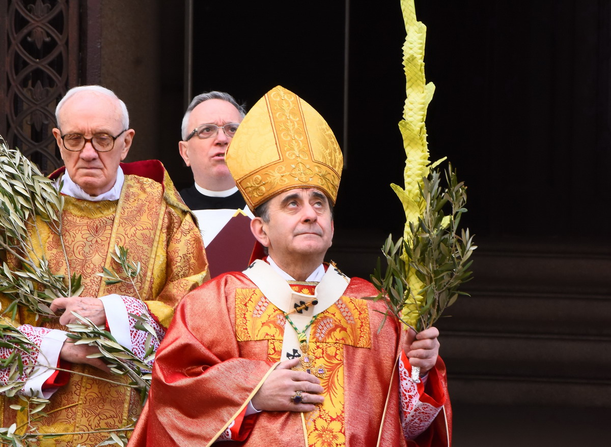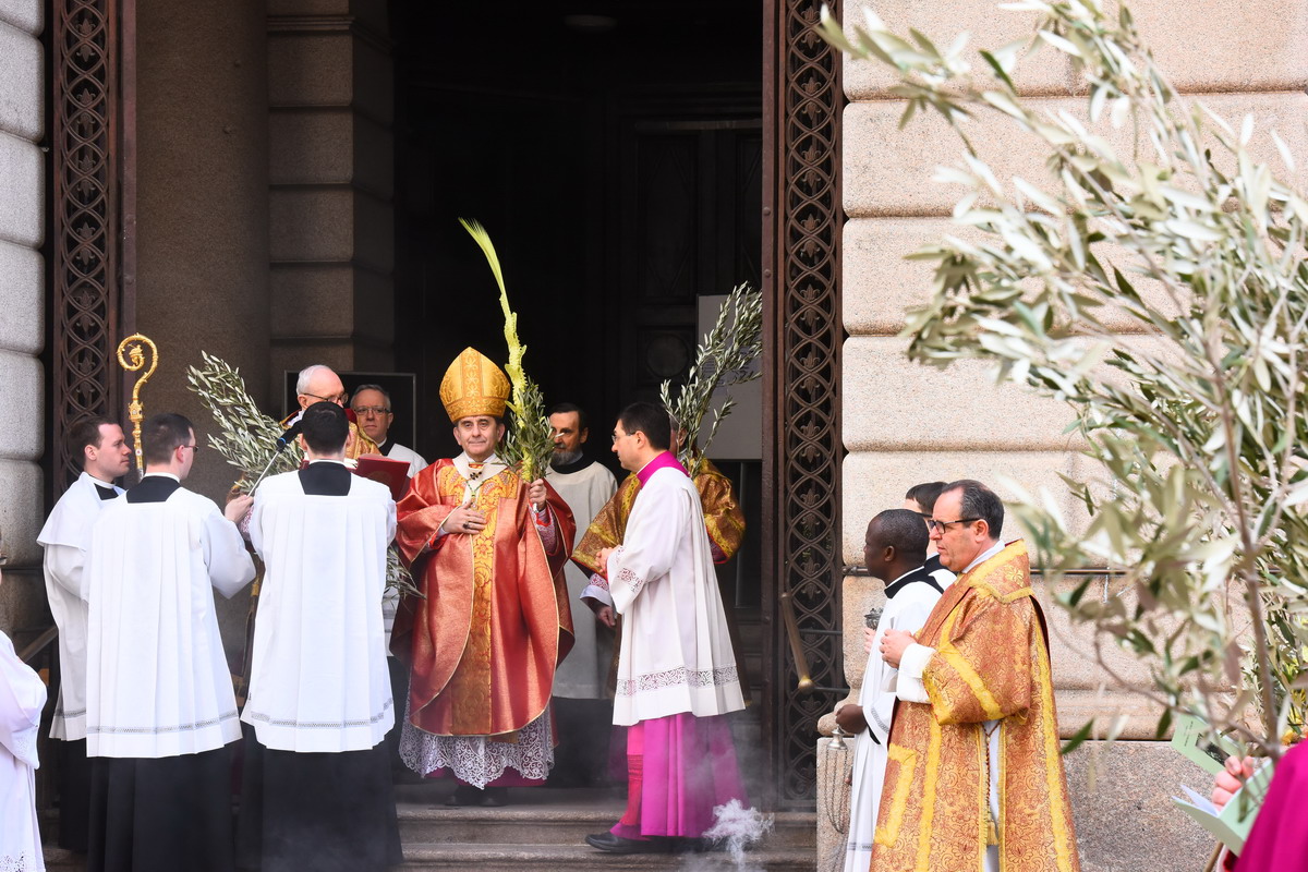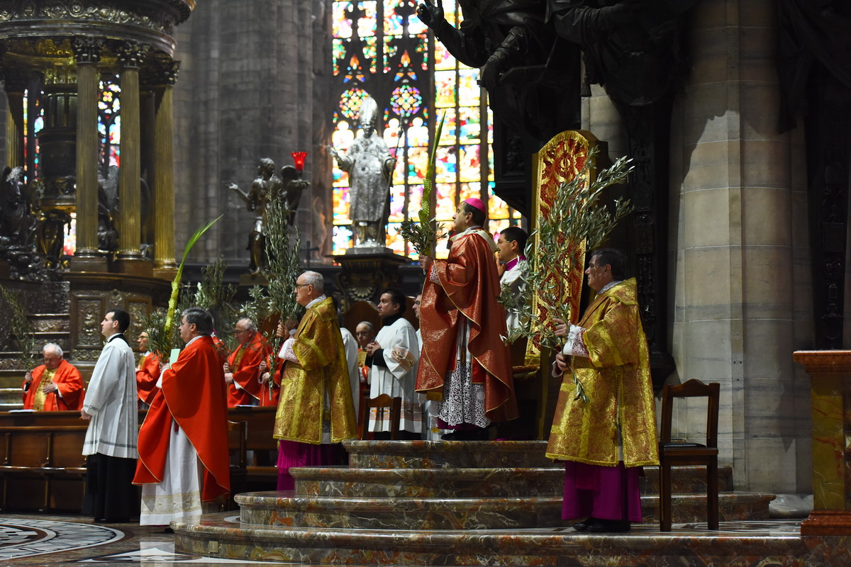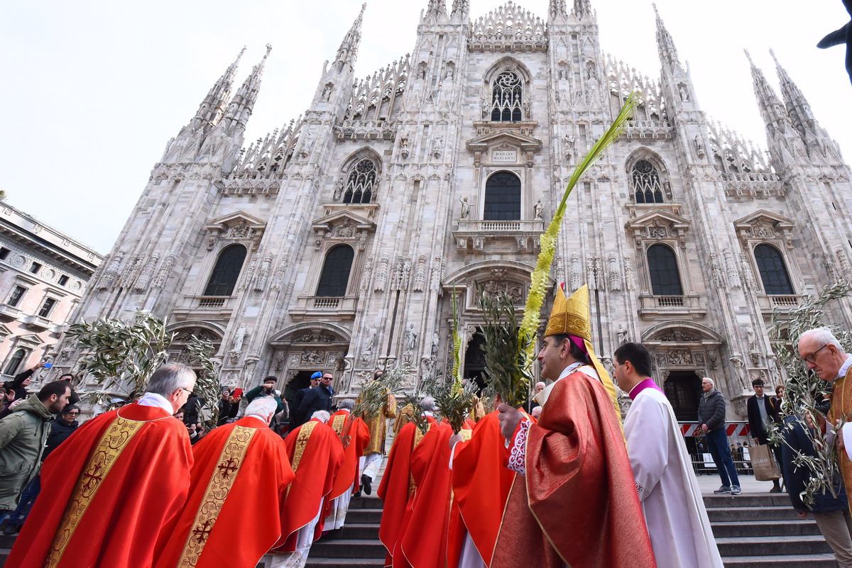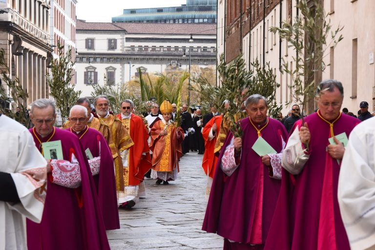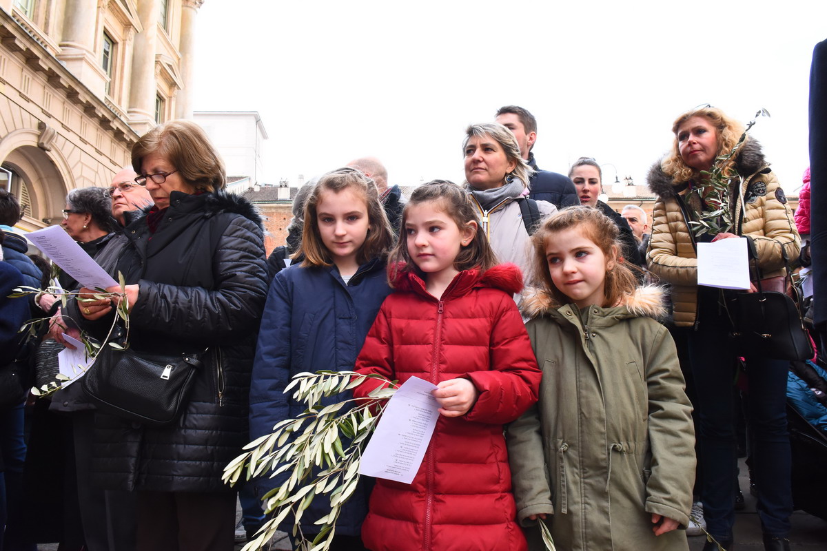 Moltissimi fedeli, tra cui tanti giovani e famiglie, hanno camminato in processione con gli ulivi e partecipato al Pontificale presieduto in Duomo dall’Arcivescovo: «Con la vostra testimonianza siate un messaggio di pace e di vita per tutti»