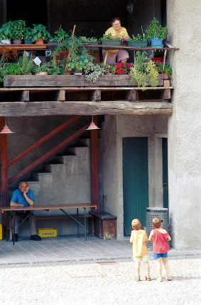 … lontano da ogni tentazione oloegrafica (così facile, ahinoi, in quegli anni), si dipana il racconto della missione salvifica della Chiesa, l’annuncio del Vangelo e le risposte degli uomini. Uomini veri, donne autentiche, con tutta la loro forza, con tutte le loro debolezze. E la vita così com’è, il quotidiano con le sue gioie e i suoi dolori. Quasi un’epopea, di schietta impronta contadina, di franca parlata brianzola. Nulla di idealizzato, nulla di astratto. Ogni volto pare un ritratto, e forse lo è davvero, come quello, ben riconoscibile, dello stesso don Brambilla. Il tutto, così, a coinvolgere e far riflettere, al di là di ogni retorica. Ad Arialdo sarebbe piaciuto, ne siamo convinti. Il castello, lo si diceva, è nel cuore della vecchia Cucciago. Quel che ne resta, naturalmente. E cioè, essenzialmente, una torre quadrata, massiccia, solida, che pare vegliare ancor oggi sul borgo e sulla sua gente. Anche se alla sua ombra, fortunatamente, più non girano ronde armate, ma gruppi di bambini presi dai loro giochi, o coppie di anziani in tranquilla conversazione. E anche qui torna il ricordo di Arialdo, alla cui famiglia il castello appartenne, come tutto il contado, del resto. In un angolo, sotto l’ingresso porticato, un incontro curioso: l’immagine di due gatti, incisa su una pietra del lastricato. A ricordare, si racconta, un epiteto dialettale che nei dintorni era stato affibbiato agli abitanti di Cucciago, giocando sull’assonanza col nome del paese: scüsciagatt, cioè “schiaccia gatti”. I cucciaghesi devono essere gente di spirito, e invece di prendersela invitano i forestieri a “calpestare” i simpatici felini. Dicono che porti fortuna. Provare non fa danno… In alto, affacciato sulla valle del Seveso, il santuario della Madonna della Neve. Vi si arriva dal centro salendo una breve rampa, generosa di scorci suggestivi. Il tempio fu realizzato nella seconda metà dell’Ottocento, con un’interessante pianta ottagonale absidata: una mole notevole, che s’impone sull’abitato e che caratterizza il paesaggio attorno. E tuttavia, proprio lì accanto vi è un altro simbolo di Cucciago, meno imponente ma ancora più importante, e ben più antico: il campanile della primigenia chiesa di San Vincenzo. Una piccola, grande meraviglia. Chi ama il romanico lo sa bene. Snello, flessuoso, appartiene a una famiglia numerosa in terra brianzola, e tuttavia con ancora più carattere, ancora più poesia. Il santuario della Madonna della Neve, d’altra parte, non ebbe mai la “sua” torre campanaria. Si scavarono le fondamenta, ma poi non se ne fece niente. Forse mancarono i fondi, forse non ci fu intesa sul progetto. O forse non si volle far torto proprio allo splendido, antichissimo campanile già esistente, che è lì, fiero, ancor oggi a far bella mostra di sé.